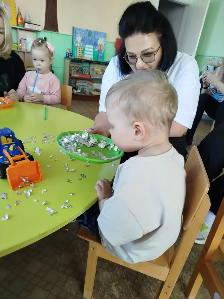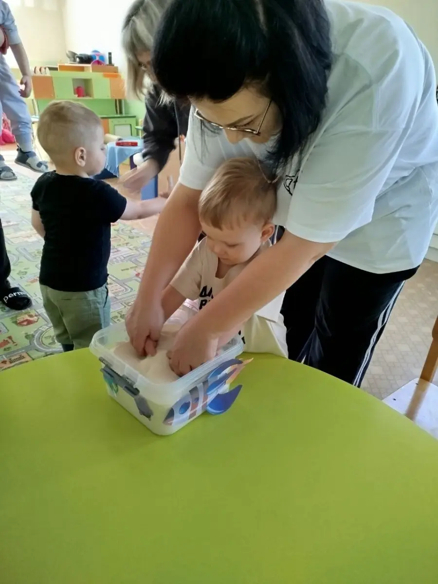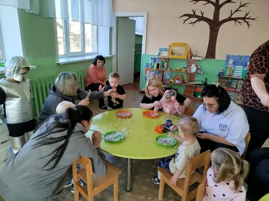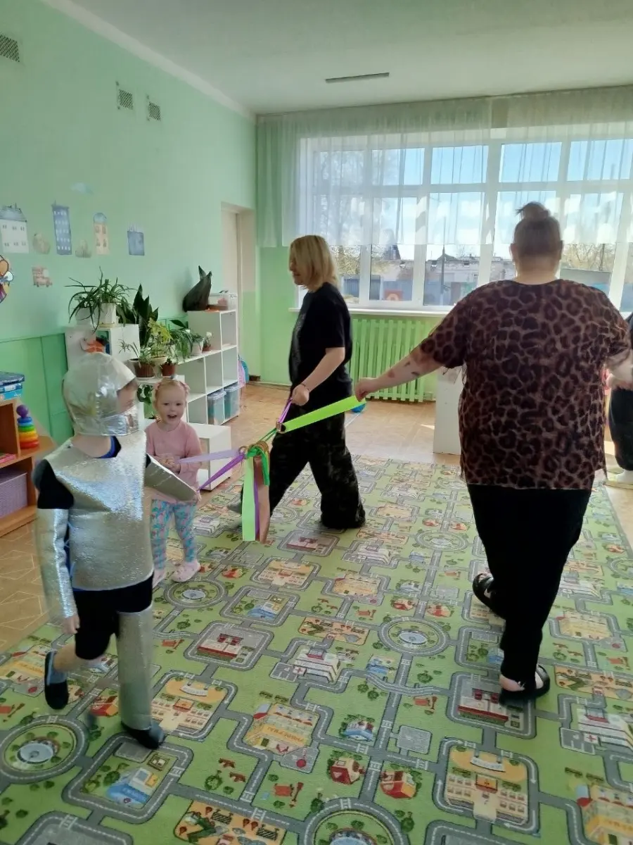 В игровой форме вместе с космонавтом будущего, с воспитанником старшей группы, малыши превратились в космонавтов и отправились на ракете в космос, наблюдая за планетами и звездами, эксперементировали с лунным песком, метеоритами, звёздной пылью. Играли в подвижные, музыкальные игры «Метеоритный дождь», «Разложи звезды по цвету» и др. Просмотрели мультфильм про космос «Малышарики — Ракета». Результатом занятия стало выполнение ребятами работ по образовательной области «Изобразительное искусство. Рисование, аппликации» - «Звёздное небо».