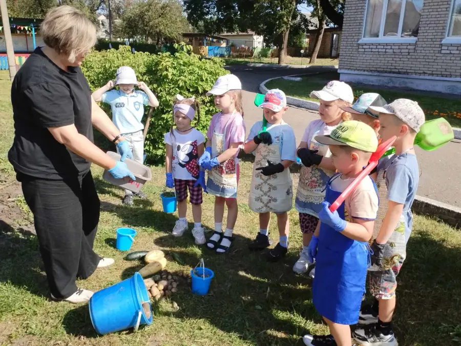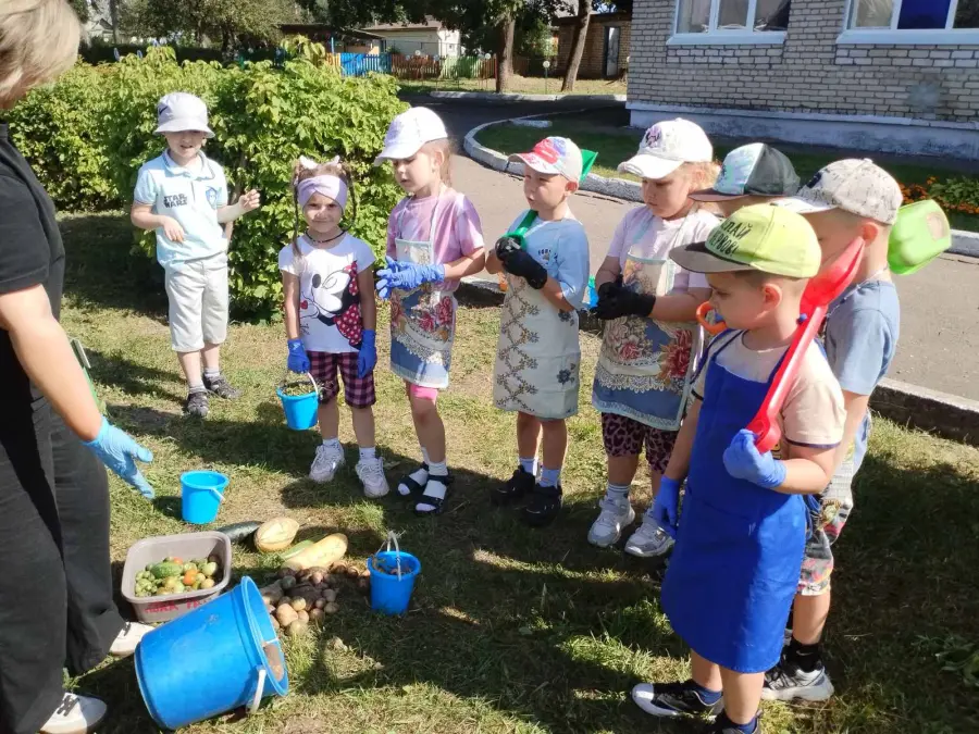 Вот и пришла пора собирать урожай на огороде детского сада. С удовольствием ребята срывают с грядки спелые помидоры, огурцы, свёклу. А самым интересным было - это копание картошки. И все это заботливо выращено нашим воспитателем дошкольного образования Драгун Инессой Владимировной совместно со старшими воспитанниками!